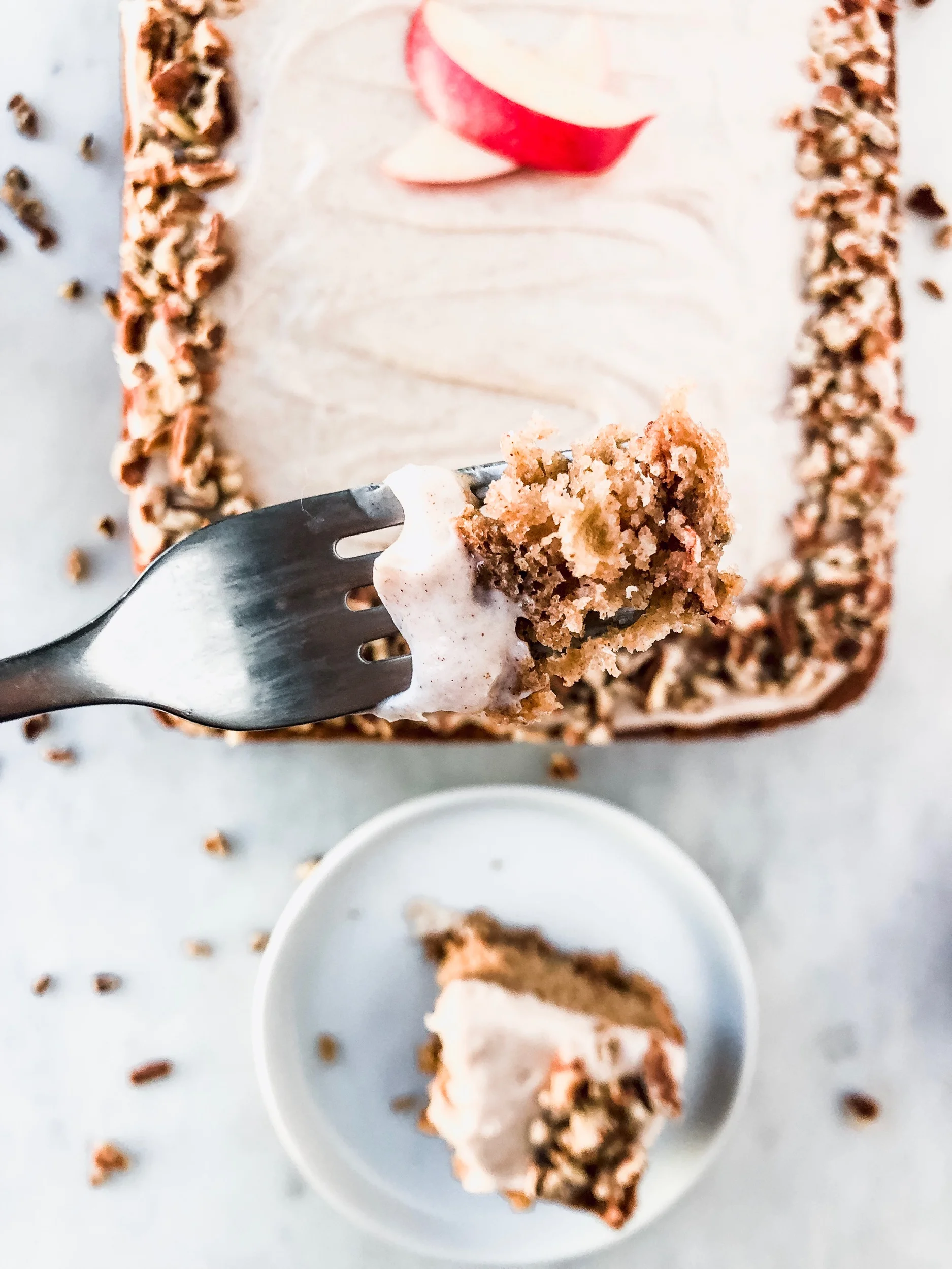 Third, you can truly make this recipe your own. I’ve provided two topping options to choose from - cinnamon cream cheese frosting for all the frosting lovers out there, and a fresh cinnamon whipped cream for those who prefer a lighter approach. Alternatively, you can choose to serve this cake fresh-from-the-oven with a scoop of vanilla ice cream on top. Finally, if you want to give your cake an added crunch, sprinkle some chopped pecans or walnuts on top.